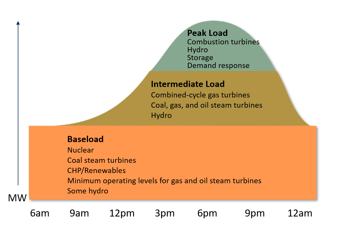 - Peak-load occurs when demand exceeds the base load, typically during morning and evening hours.