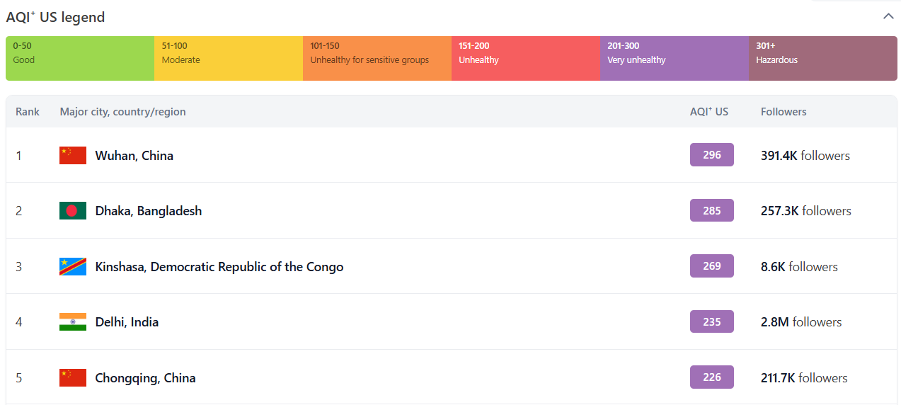 According to IQAir, a world leader in air pollution monitoring and solutions provider. The most polluted cities as of January 2025 are as follows.